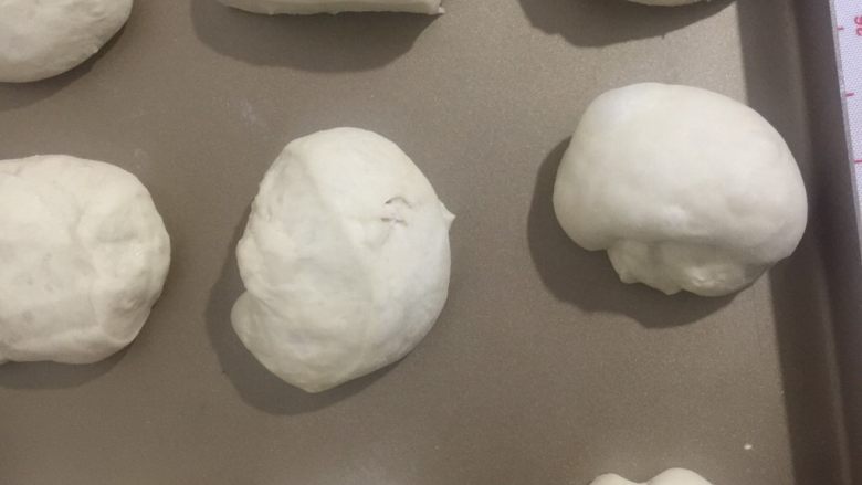 9. 将面团轻轻排气分割成9分进行松弛15-20分钟,松弛温度26度左右,温度太低需要延长时间