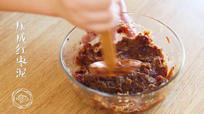 9. 红枣泥中加入牛奶、红糖、蛋黄和玉米油~