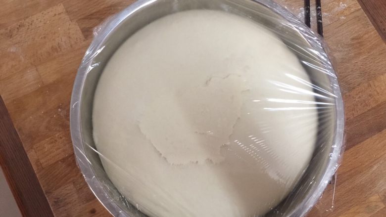 3. 面团揉匀后放入干净的盆里,盖上保鲜膜放入烤箱中发酵
