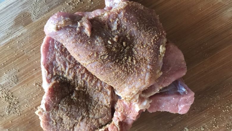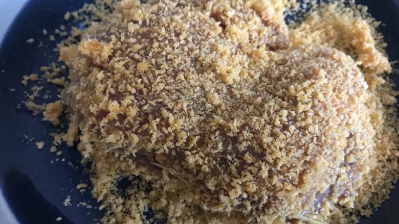 7. 用牙签把瘦肉缝上,防止芝士漏出