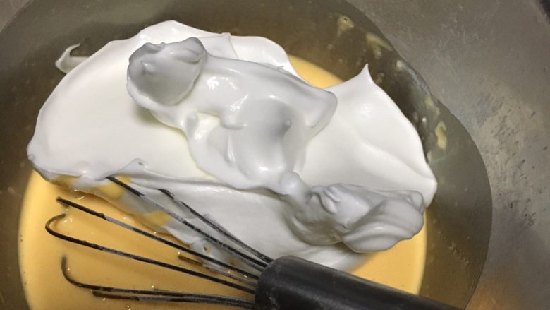 10. 取一半蛋白到蛋黄糊里