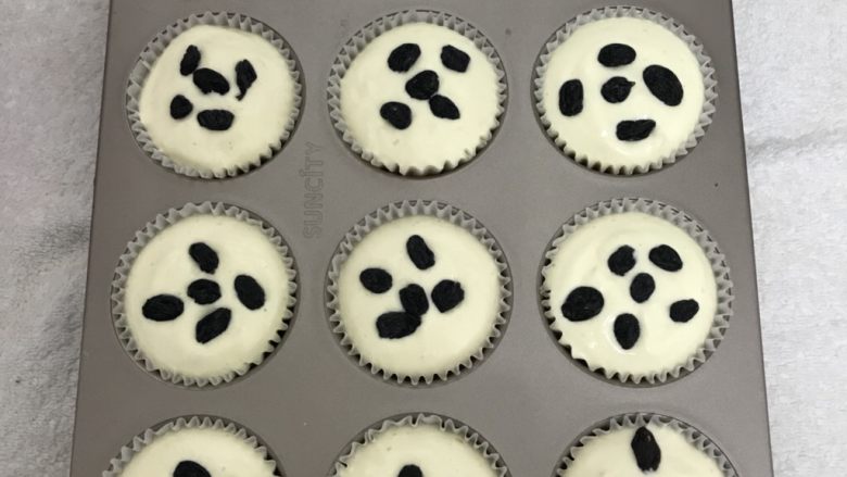 14. 底部用剪刀剪一个口,挤入纸杯中九分满,表面放上预先泡好的紫葡萄干。