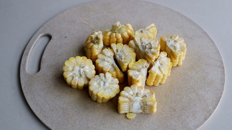 6. 大约30分钟以后,排骨汤呈现白色,加入玉米块;