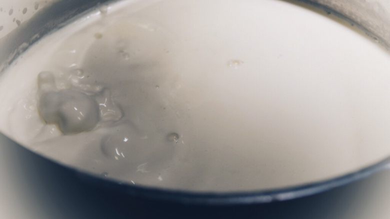 5. 开始沸腾了。如果你的用量比较小,小的不粘锅会从边缘开始有沸腾的小泡。这时候就要转中小火了。
