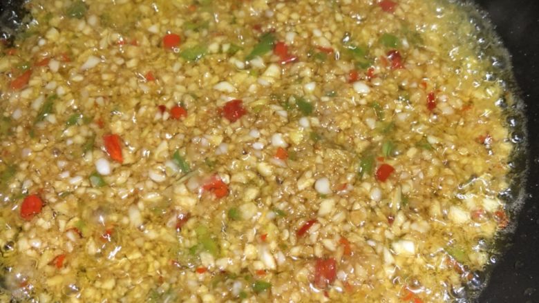 10. 翻炒均匀。煸炒一会后,用筷子尝一下,感觉蒜泥吃到嘴里没那么辛辣就关火。油温会带熟蒜泥。