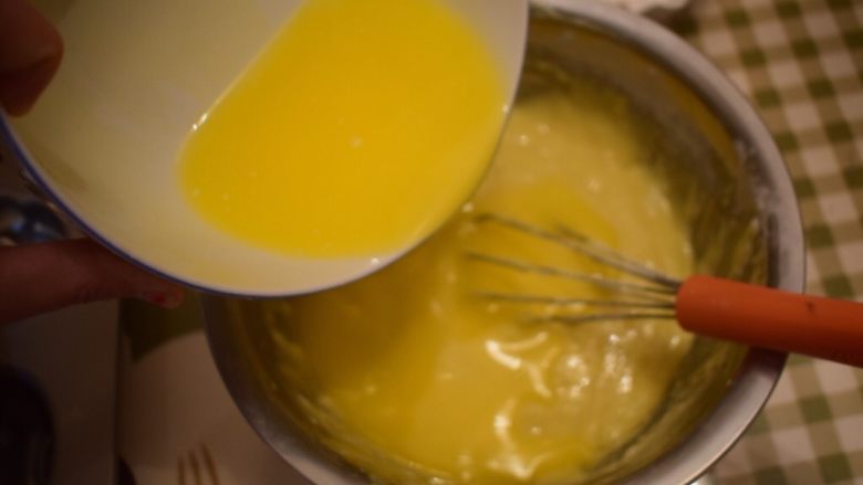 5. 黄油融化成液体倒入面糊里拌匀