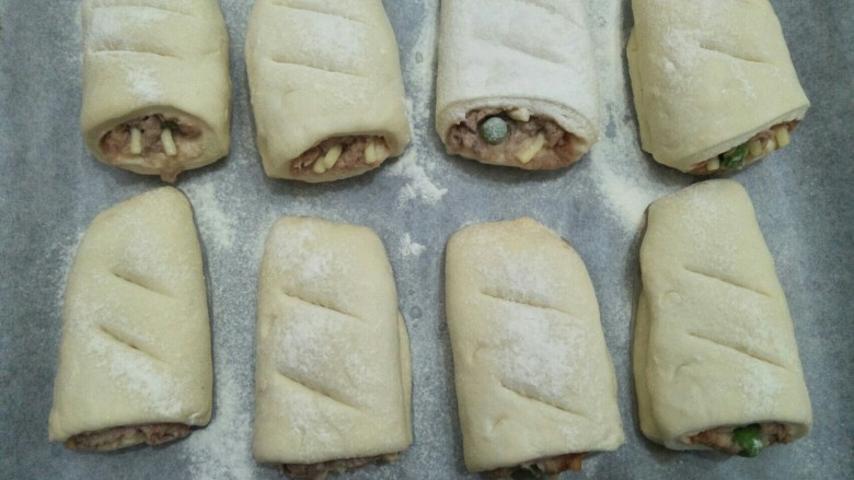 18. 在发酵好的面团表演涂上一层水后筛上干粉。