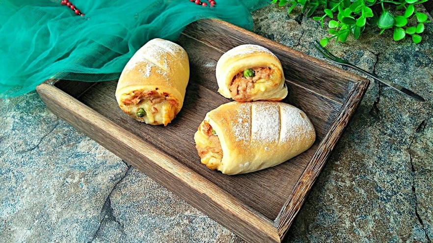 黄油热量,我用植物油来做这款口袋包,加入金枪鱼和马苏里拉芝士还有吃披萨的感觉!