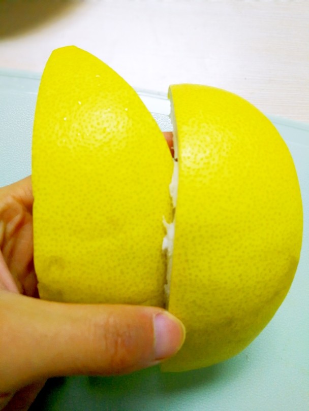 1. 选择一个新鲜、柚子皮干净的柚子,清水冲洗;