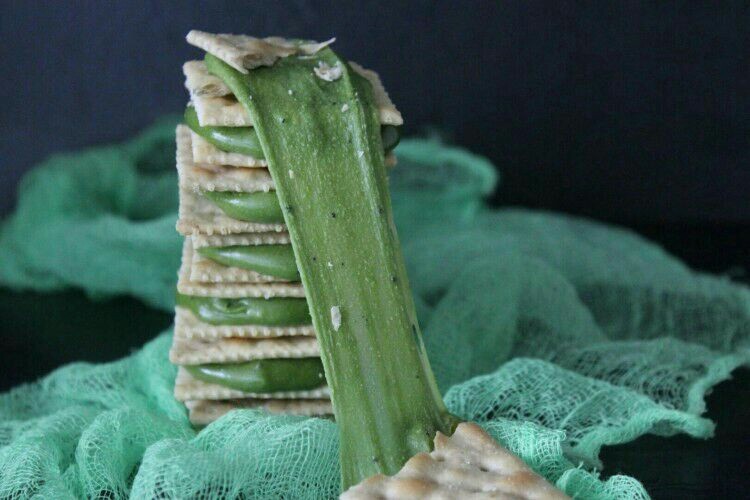 16. 带上一次性手套,从锅里揪一小块糖下来,放在苏打饼干中间。