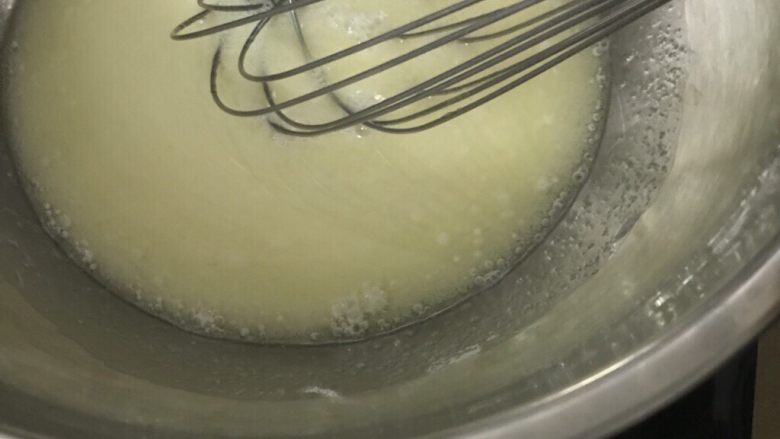 3. 隔热水搅拌均匀,至比较烫手以后离火。