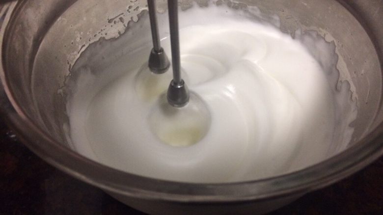 17. 把混合物倒入蛋白霜中,快速翻拌均匀,切忌搅拌。