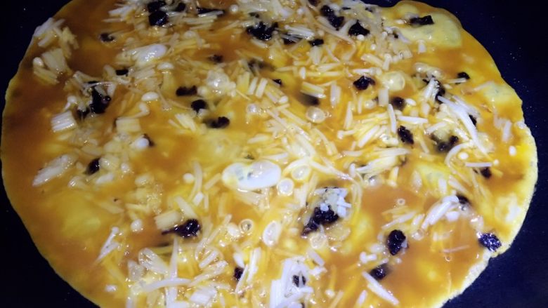 13. 煎至蛋液凝固即可
