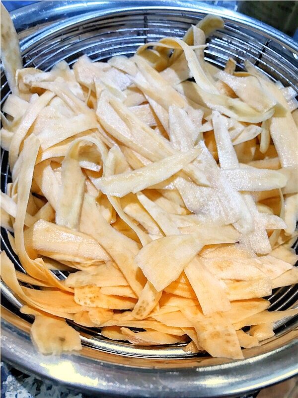 - 1.削皮器是一个好帮手,削出来的番薯片既规整,薄厚也差不多。不至于在炸的时候有的糊了有的还没干。