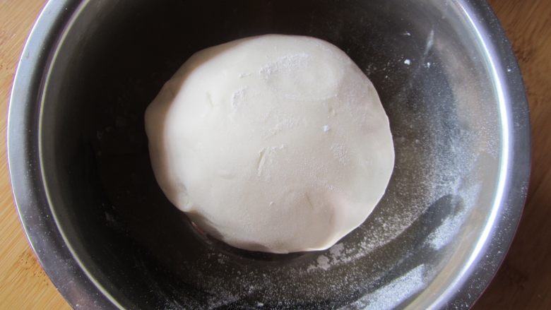 2. 再慢慢倒入冷水揉成光滑的面团加盖保鲜膜醒20分钟
