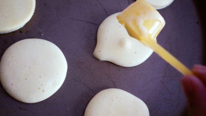 19. 待松饼表面有大气泡用平铲或者我用的是刀,给翻下面