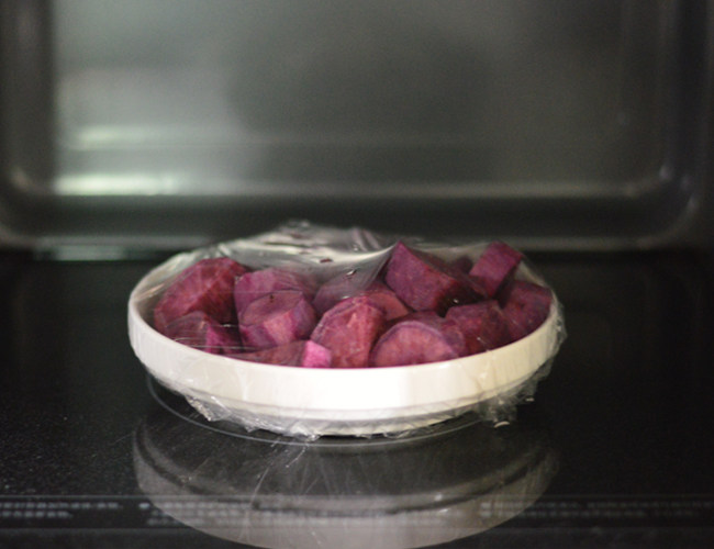 9. 紫薯去皮切小块,放微波炉高火叮5分钟