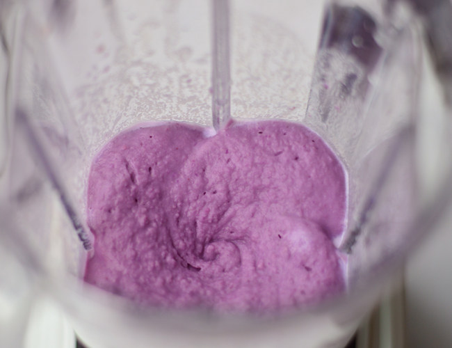 10. 放凉后加入淡奶油,用料理机打成细腻的紫薯泥