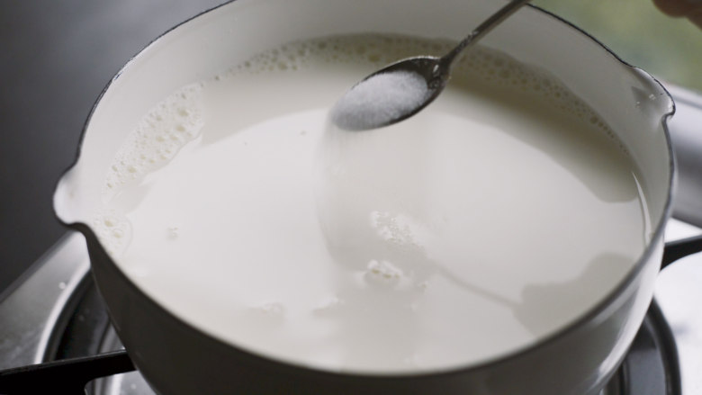 1. 一升牛奶,加入1小勺盐。