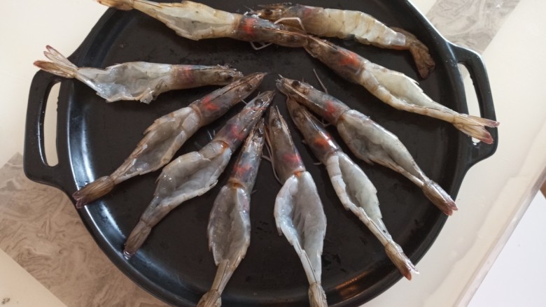 把虾放上肉泥,撒上芝士,用烤箱把他烤熟。熊孩子趴在桌子上,隔着烤箱玻璃看到虾慢慢变红,芝士一点点融化,很雀跃的等着吃。甘甜的虾肉,咸香的肉泥,浓香的芝士,去掉虾壳后一口一个,左手一个,右手再一个,小嘴满满当当。你喜欢吃是我做的动力。