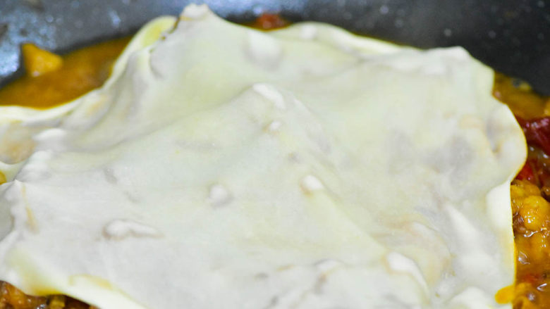 21. 淋一些汤汁在饼上。然后盖上锅盖,烧2-3分钟。