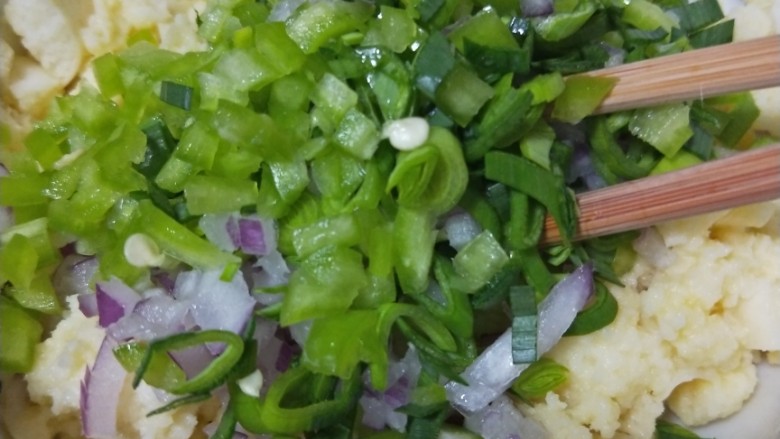 19. 松软的馒头烙饼,带着青椒淡淡的辣味,香葱和蒜苗的香味,味道好极了!