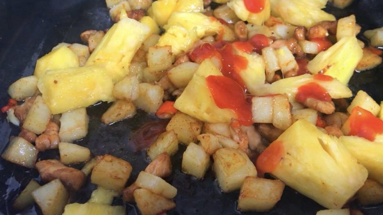 21. 再放番茄酱,翻炒均匀,收汁即可