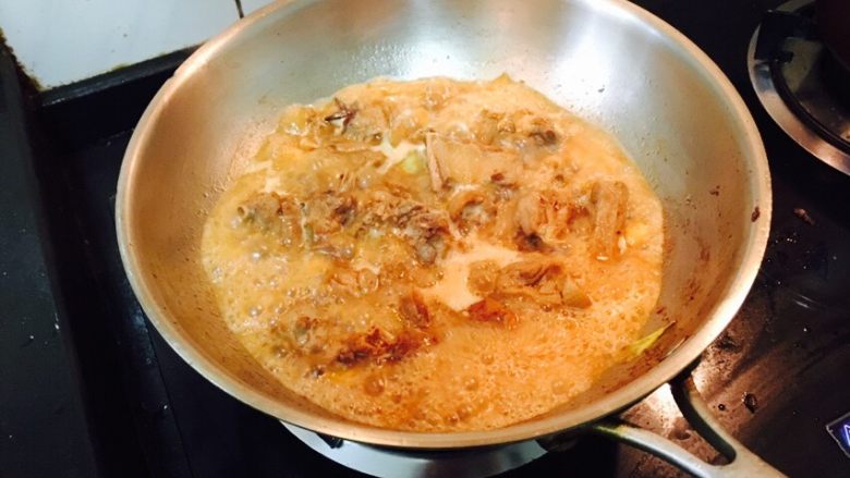 11. 加酱油,蚝油,冰糖继续小火翻炒1分钟