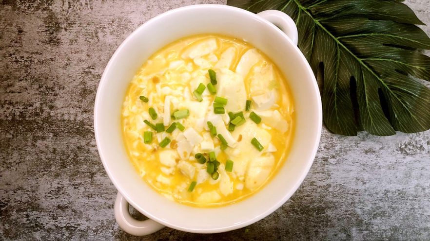 2. 咸鸭蛋蛋黄蛋白分离,捣成碎末。