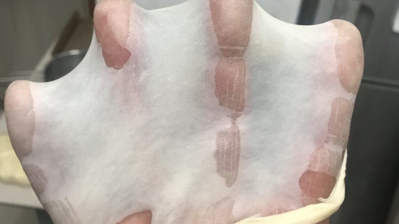 5. 揉至扩展阶段,拉开厚一点膜,洞囗有锯齿状。