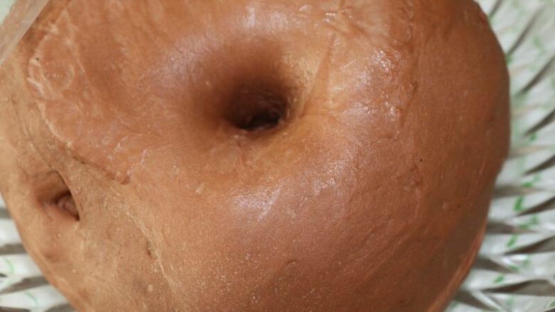 10. 面团发酵至原来的2-2.5倍大,手指戳孔不塌陷不回缩即表示发酵完成了.