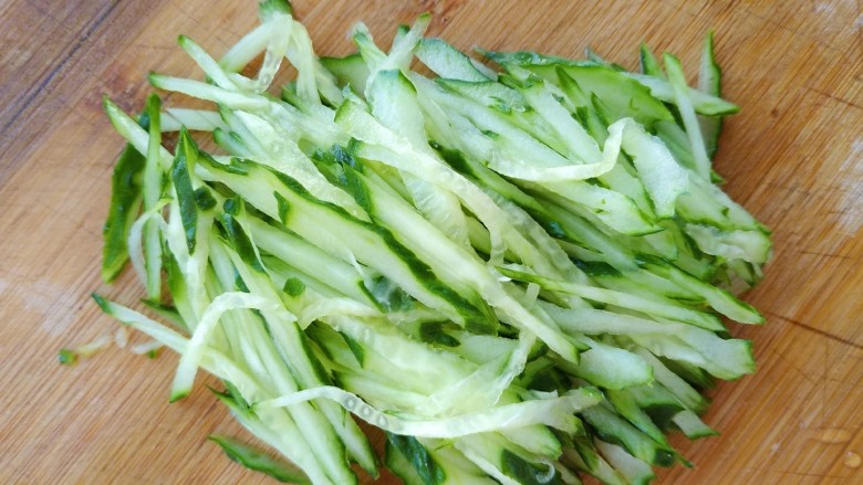 12. 把煮好的咖喱肉丁浇在面条上,再放一些黄瓜丝