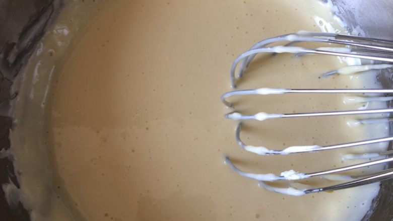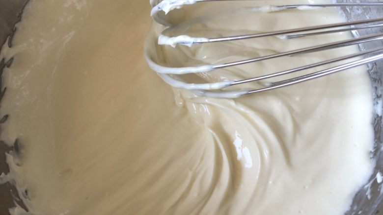 8. 用蛋抽快速拌匀,不用担心起筋,快手操作,拌好的奶酪糊如图