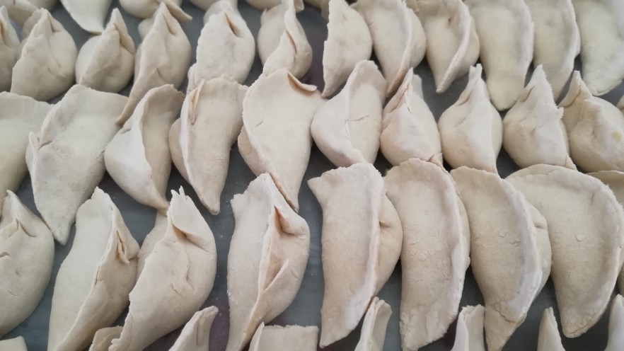 11. 压扁,擀成饺子皮
