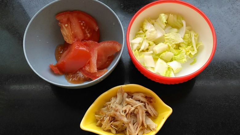 我们当地面食吃法很多,有个面食叫揪片,也是我们常吃的一道主食,我用菠菜汁和面,做成揪片,用前一天炖好的鸡腿肉丝煮面,很鲜美可口,我姑娘吃了一碗呢。