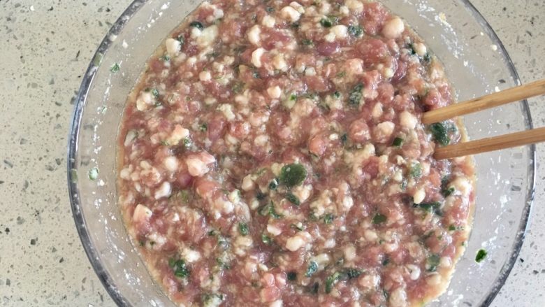 3. 将肉末装入碗中,加入料酒、几滴醋、盐、白糖生抽搅拌均匀(一定要同一方向搅拌哦)