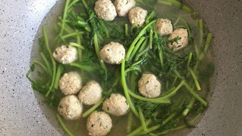 肉丸茼蒿汤,美味的茼蒿汤就完成啦