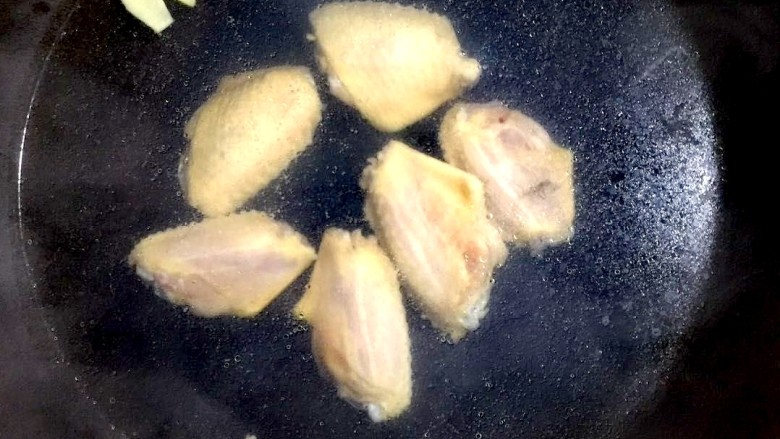 11. 倒入香锅料小火炒香后,放入翅中,小火熬制几分钟入味