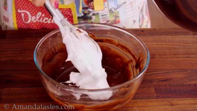6. 把蛋清倒入蛋黄糊中拌匀