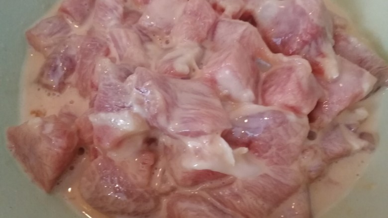 5. 切好的猪肉里加淀粉和一个鸡蛋