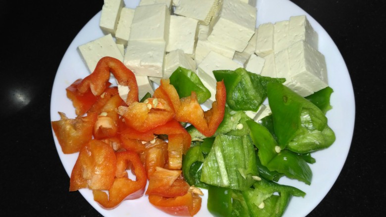 3. 豆腐切块,青红椒切块