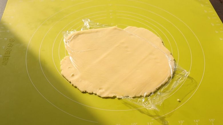 23. 取出酥皮,隔保鲜膜擀开