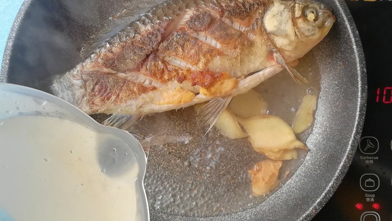 - 2.鲫鱼两面煎透后记得加的一定是开水哦,开水才能煮出奶色的鲫鱼汤