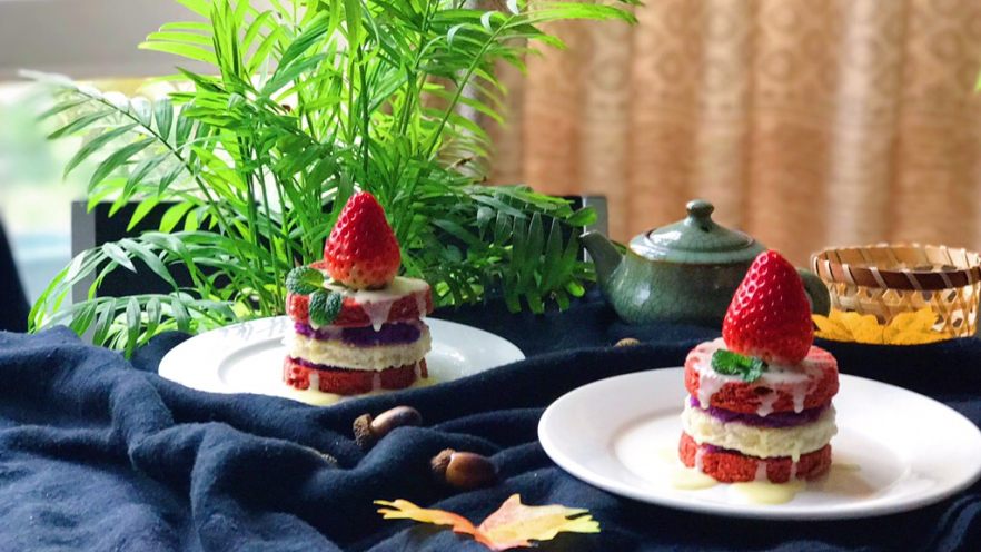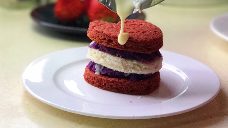 迷你版紫薯馅吐司红丝绒裸蛋糕