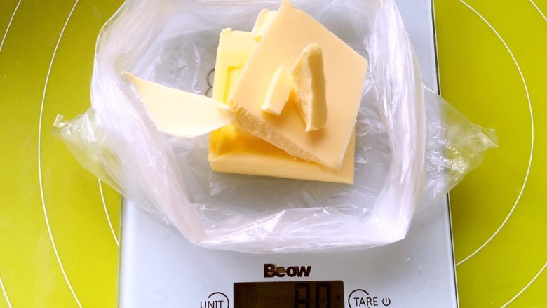 15. 之后对折保鲜袋,用擀面杖将黄油擀成均匀的薄片,入冰箱冷冻
