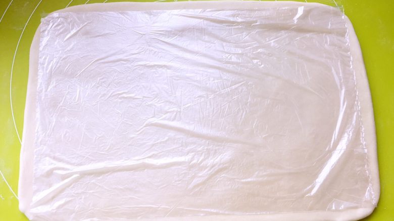 11. 将面团擀成长方形,大小比中号保鲜袋大一点点即可
