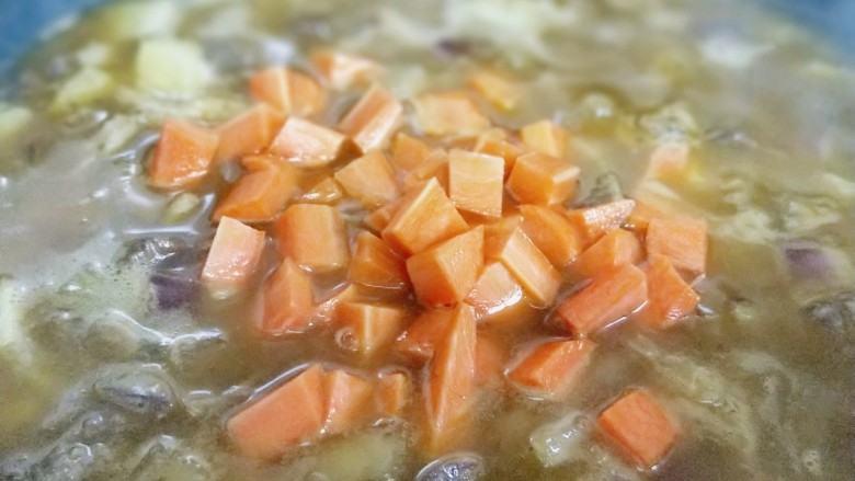 13. 加入切好的胡萝卜丁,继续炖5分钟即可。