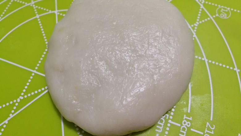 13. 将炒好的竽泥放到面垫上,带上手套,揉成光滑的团。有点烫