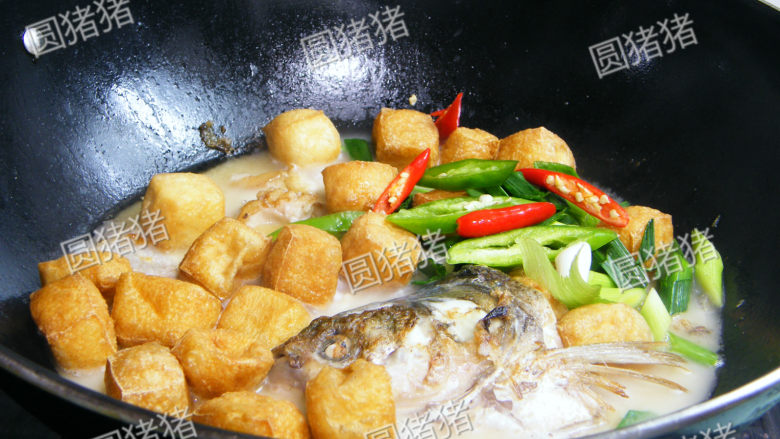 7. 大火烧开后,转中小火加盖慢慢焖煮至汤色转白。