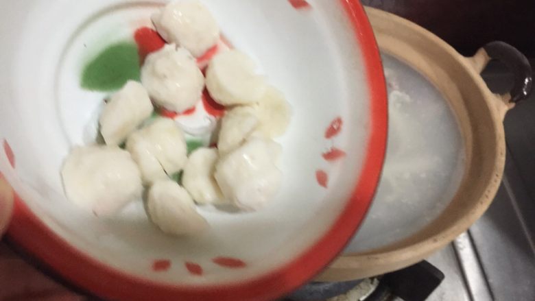 7. 再次煮开时,加入炸好的大虾仁,熟的发财丸。